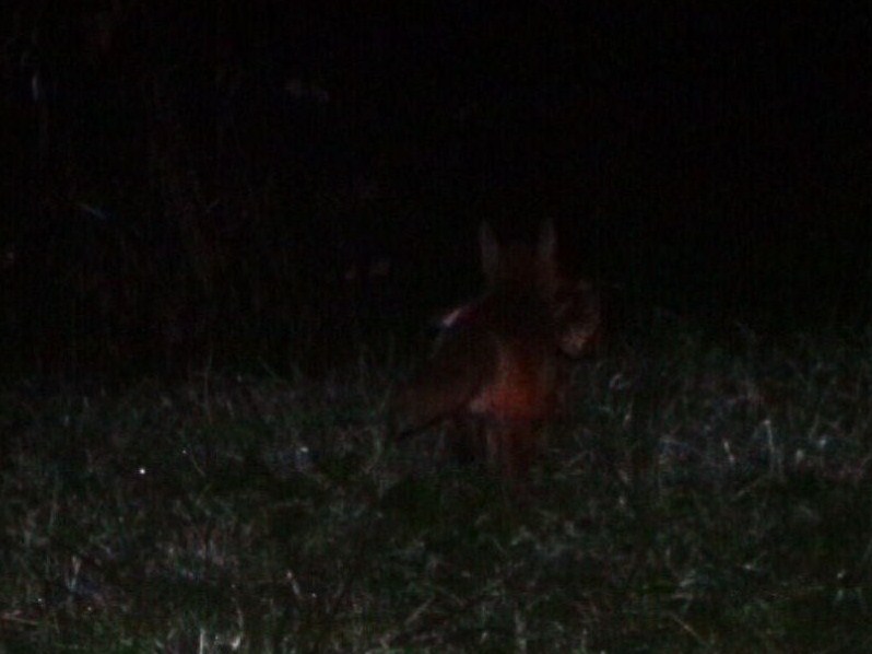 vingt secondes après le renard est hors de portée du second flash mais on voit sa silhouette s'éloigner à l'horizon...