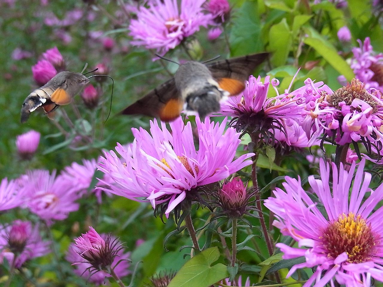 le sphinx tente alors de butiner en passant sa trompe au travers de l'amas de pétales refermés sur la fleur... :-)