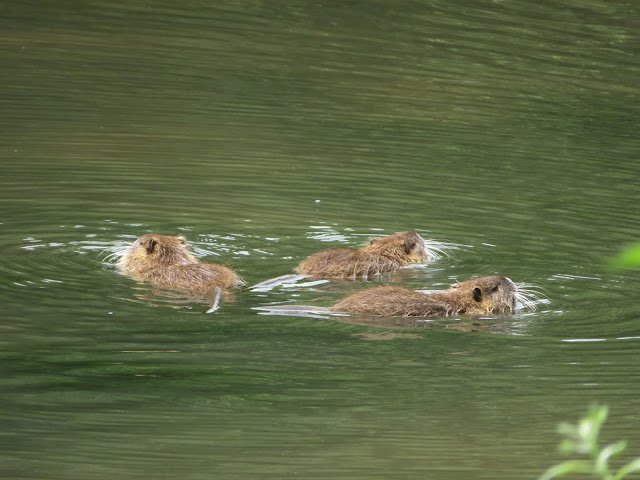 la famille ragondin est toujours au rendez-vous lorsque j'arrive au bord de l'étang... les petits - ils sont quatre - sont un peu plus discrets mais commencent à s'habituer...